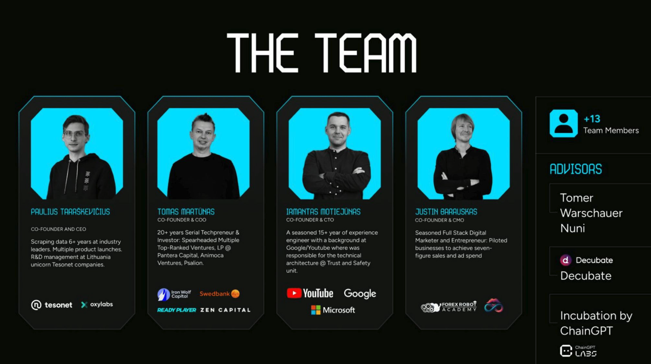 • Irmantas Motiejunas, CTO: A seasoned engineer with a background at Google, Irmantas is responsible for the technical architecture and security of the platform