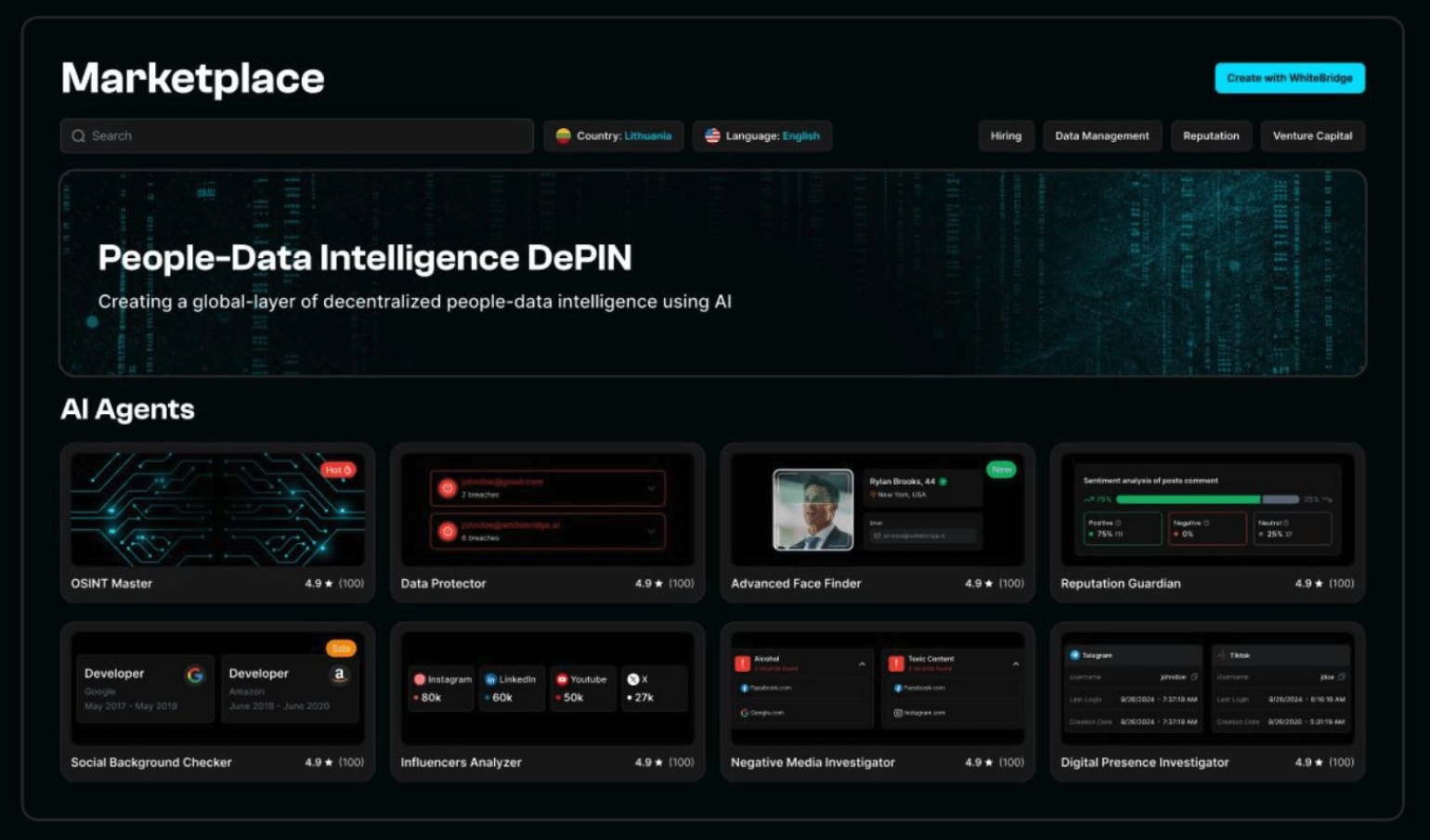 **Overview:** The AI Agents Marketplace is a dynamic hub within the WhiteBridge AI Agents Network ecosystem where users, developers, and businesses can access, customize, and deploy AI agents tailored to their unique needs. This marketplace leverages the decentralized infrastructure of WhiteBridge AI Agents Network, providing a seamless and scalable environment for data-driven decision-making.